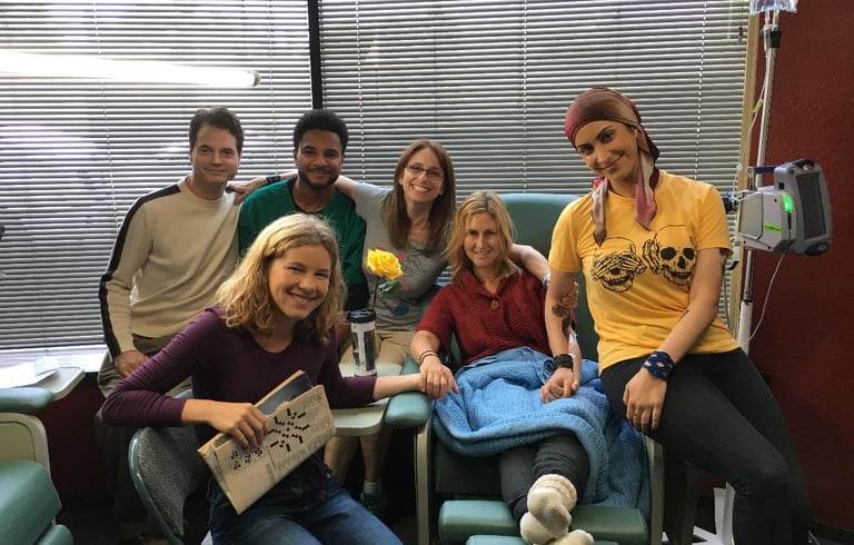 on set with director Valerie Finkel and cast, Los Angeles